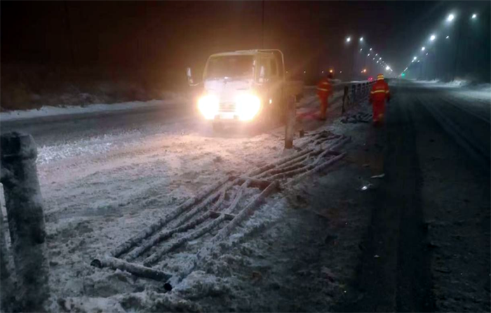 市政分公司根據公司安排,負責融雪劑裝卸工作,從2月3日下午到4日上午,市政分公司累計裝卸融雪劑已達150余噸。該分公司在做好保障融雪劑裝卸作業(yè)的同時(shí),抽調4名精兵強將,處理因大雪導致的道路交通事故應急處置4起,應急處理道路護欄11節,約38米,防止交通事故二次發(fā)生。在5日凌晨更是經(jīng)理盧正楊帶領(lǐng)10名黨員先鋒突擊隊,支援重點(diǎn)道路徐新路的融雪劑拋灑作業(yè),僅靠雙手揮著(zhù)鐵锨,通宵奮戰,迎難而上,高質(zhì)高效完成融雪劑拋灑作業(yè)路段。(李濤)