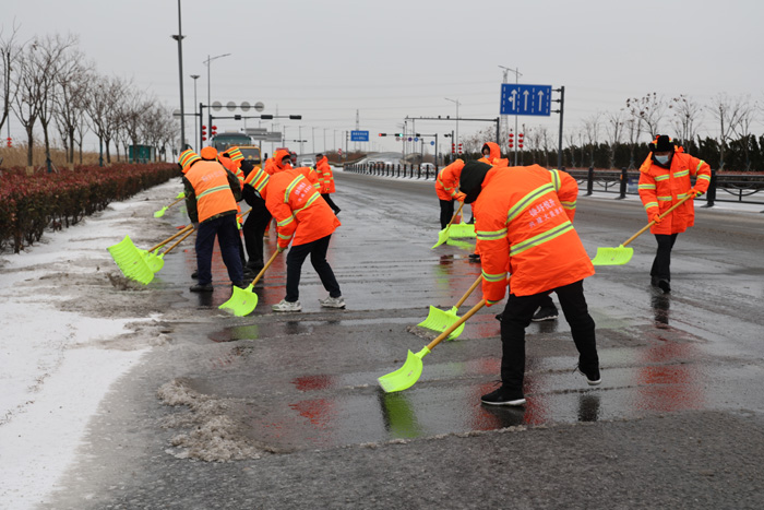 截止早上7點(diǎn),悅升公司共出動(dòng)機械設備10臺、人員260余人,對橋梁和重點(diǎn)結冰地段使用融雪劑150余噸,及時(shí)消除路面冰凍隱患100余處。